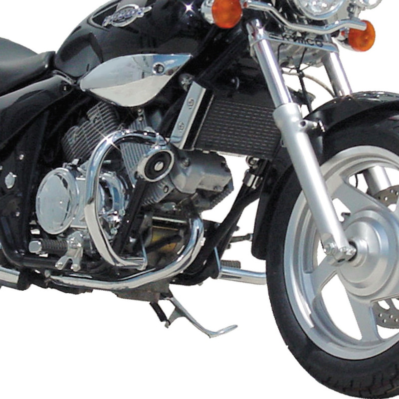 Protégez efficacement votre moto et votre sécurité avec cette paire de pare-carters en acier cintré, conçue pour absorber les chocs et limiter les dommages en cas de chute.