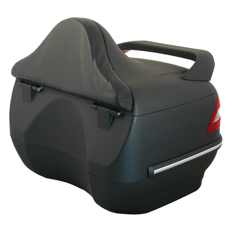 En plus de sa grande capacité pour transporter les bagages, son dossier intégré apporte confort au passager. L'arrière du coffre forme un creux pour accueillir le dos du passager. Le coussin fixé sur la partie supérieure du coffre est composé d'une mousse haute résilience et recouvert d'un revêtement en sky (immitation cuir).