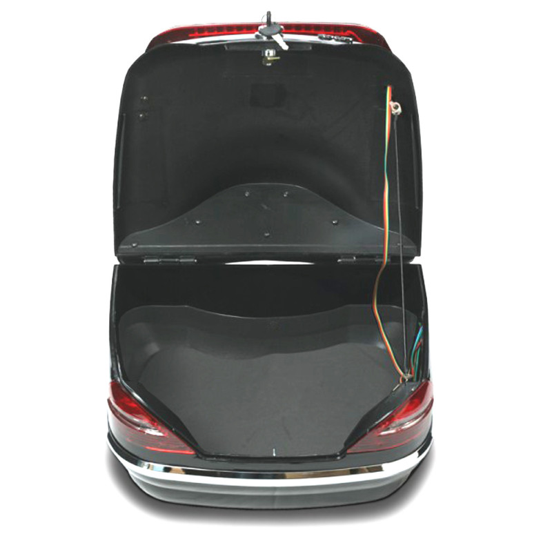 En plus de sa grande capacité pour transporter les bagages, son dossier intégré apporte confort au passager. L'arrière du coffre forme un creux pour accueillir le dos du passager. Le coussin fixé sur la partie supérieure du coffre est composé d'une mousse haute résilience et recouvert d'un revêtement en sky (immitation cuir).