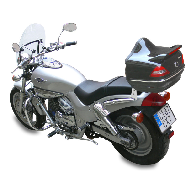 Cette pièce est universelle et convient à la plupart des modèles de motos et scooters. Pour son montage, il est indispensable d'avoir un porte bagages installé, sur lequel le coffre sera fixé. La fixation se fait à l'aide d'une platine fournie et du kit de visserie inclu.