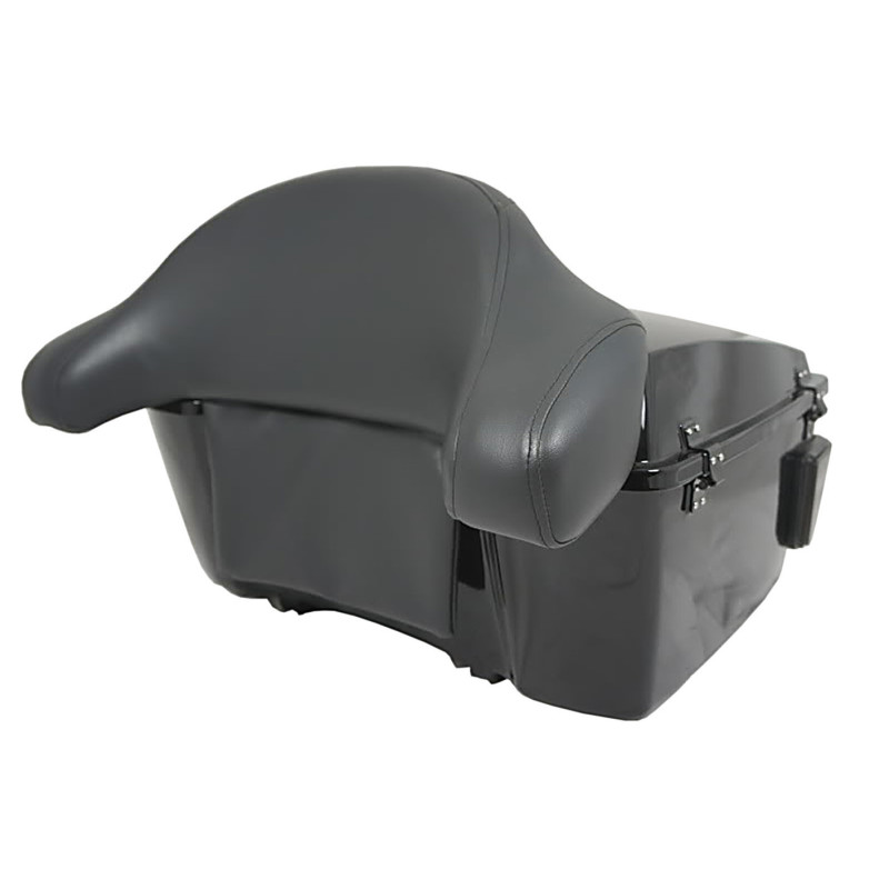 En plus de sa grande capacité pour transporter les bagages, son dossier intégré apporte confort au passager. Le coussin fixé à l'arrière du coffre est composé d'une mousse haute résilience et recouvert d'un revêtement en sky (immitation cuir) pour éviter les désagréments de l'humidité.